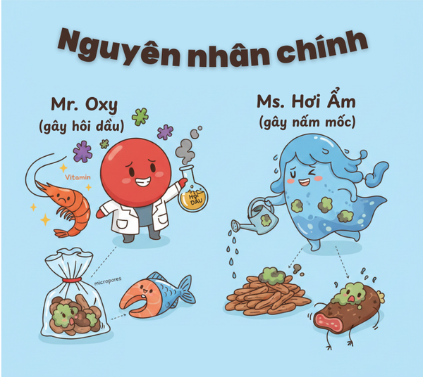 Đó không phải là chuyện “xui rủi”. Đó là lúc oxy và hơi ẩm đã âm thầm phá hủy cấu trúc dinh dưỡng bên trong thực phẩm.