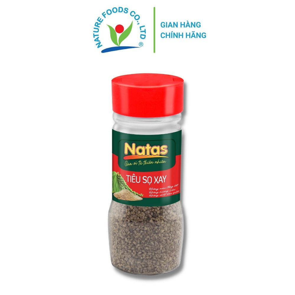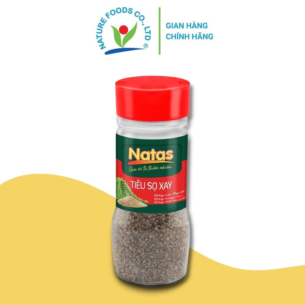 Tiêu sọ xay Natas được nghiền nhỏ từ nguồn tiêu sọ nguyên liệu 100% nguyên chất được nhập chính nguồn từ các tỉnh Tây Nguyên, được sản xuất theo quy trình kiểm soát nghiêm ngặt tạo nên sản phẩm Tiêu sọ xay với mùi thơm, cay nồng đặc trưng tự nhiên.