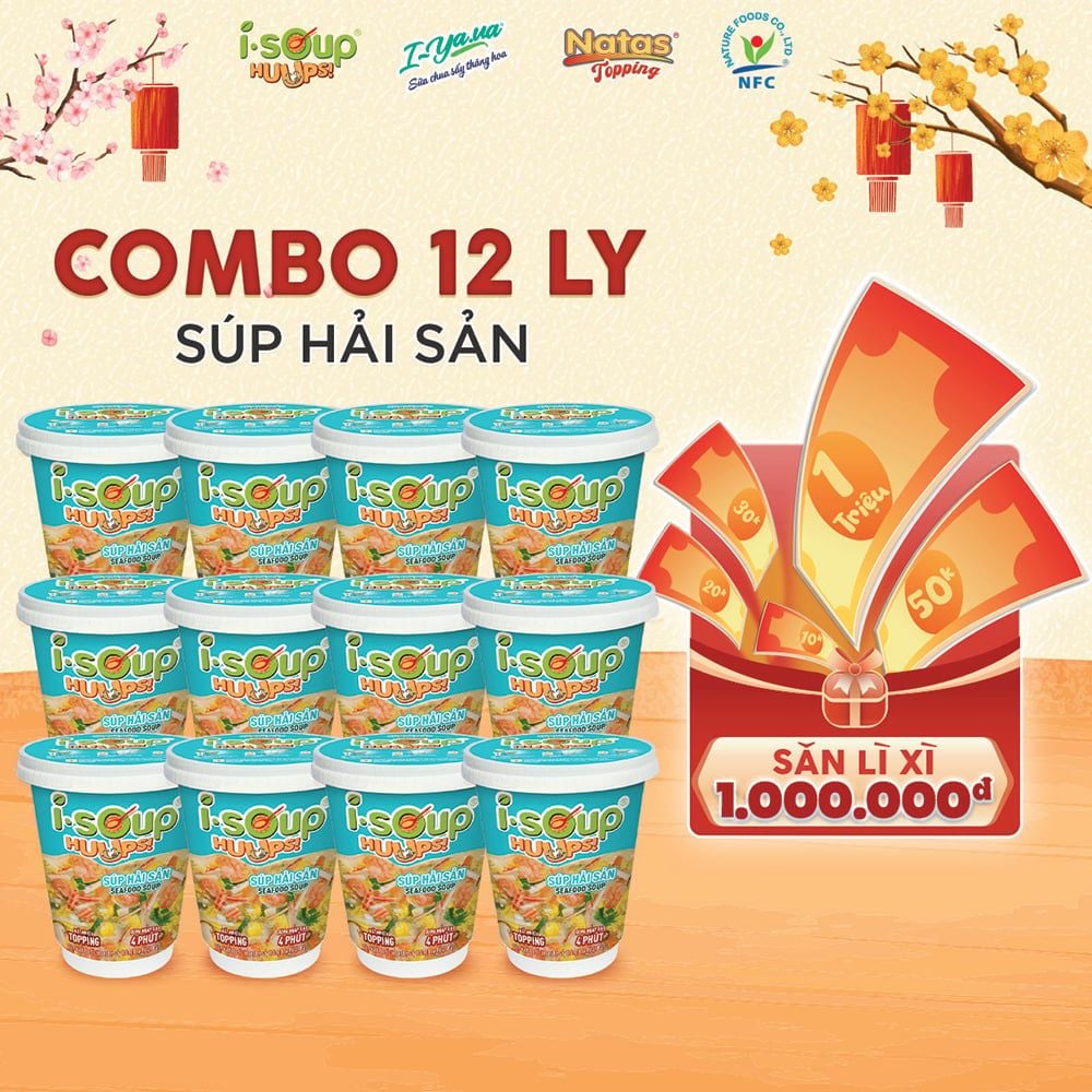 Combo 12 Ly Súp Hải Sản Ăn Liền ISOUP HUUPS! Hũ 14G - Súp Ăn Liền Sấy Thăng Hoa