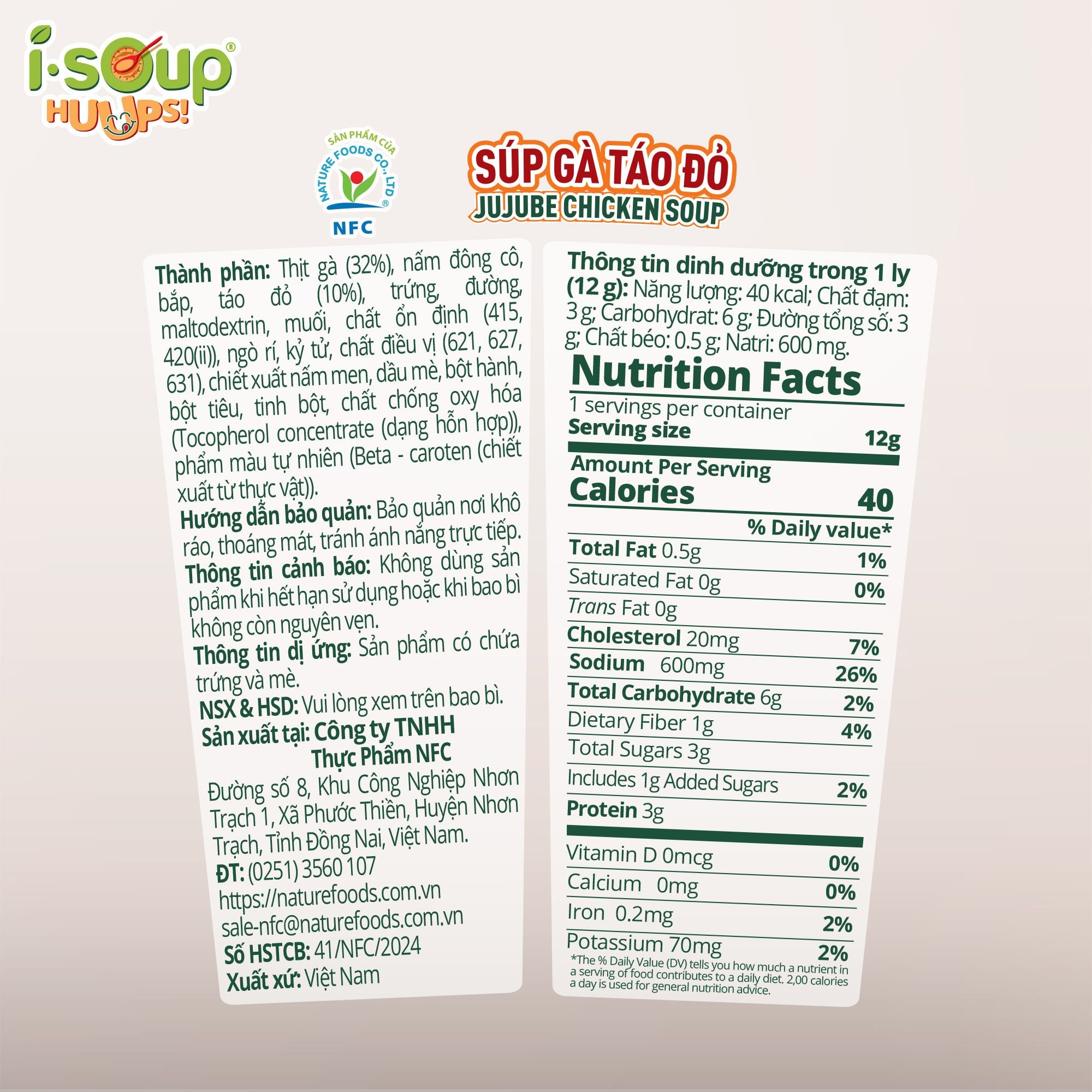 Súp Gà Táo Đỏ Ăn Liền ISOUP HUUPS! Hũ 12G - Súp Ăn Liền Sấy Thăng Hoa