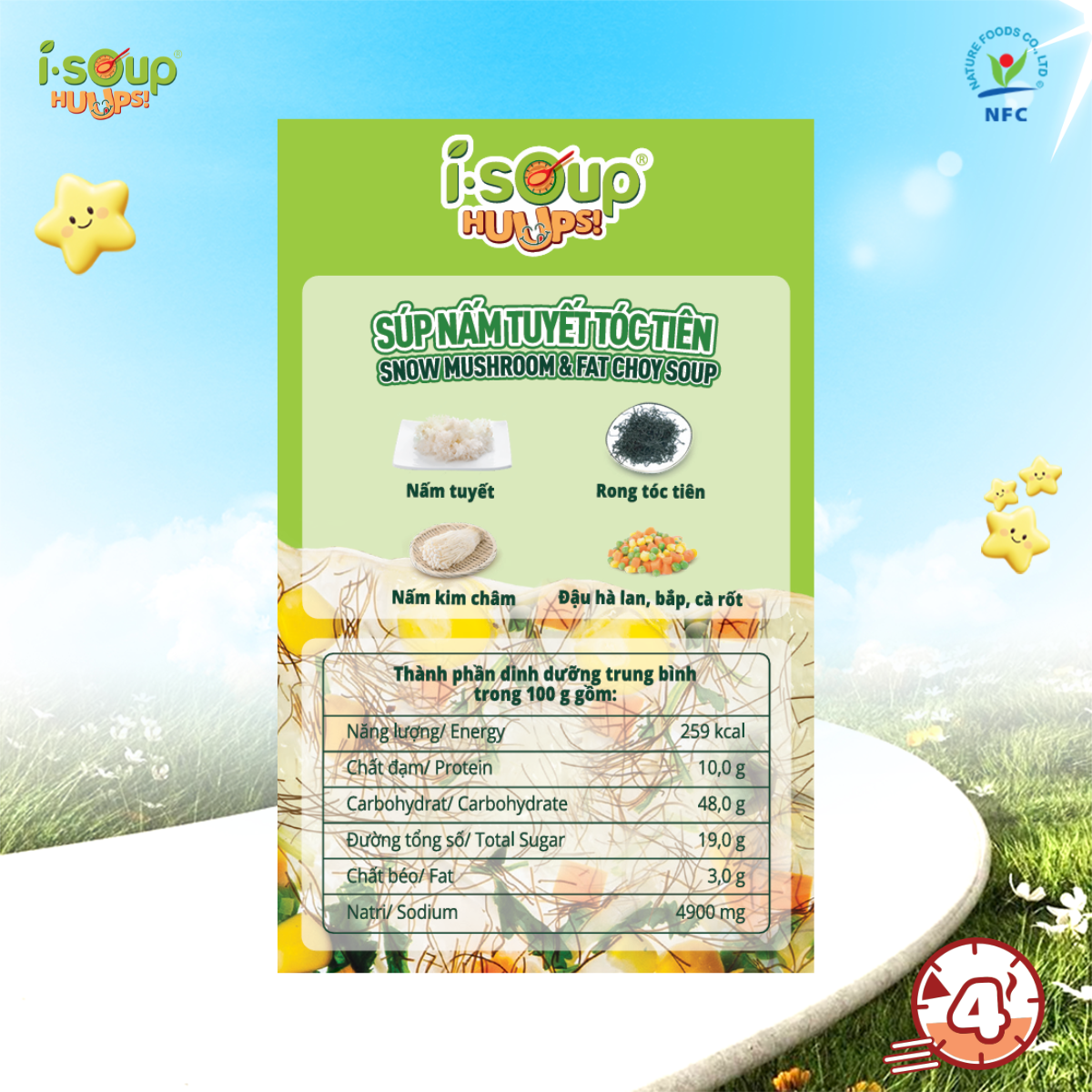 Súp Nấm Tuyết Tóc Tiên HUUPS! mang đến hương vị thanh mát, nhẹ bụng và lành tính – hoàn hảo cho cả gia đình.